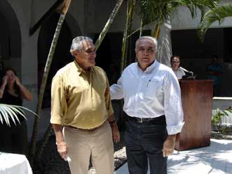 O Tabelião HORÁCIO MARQUES NETO (à esquerda), recebe o Diploma de Reconhecimento de Serviços Prestados a este Hospital das mãos do Dr. ARAMICY PINTO.